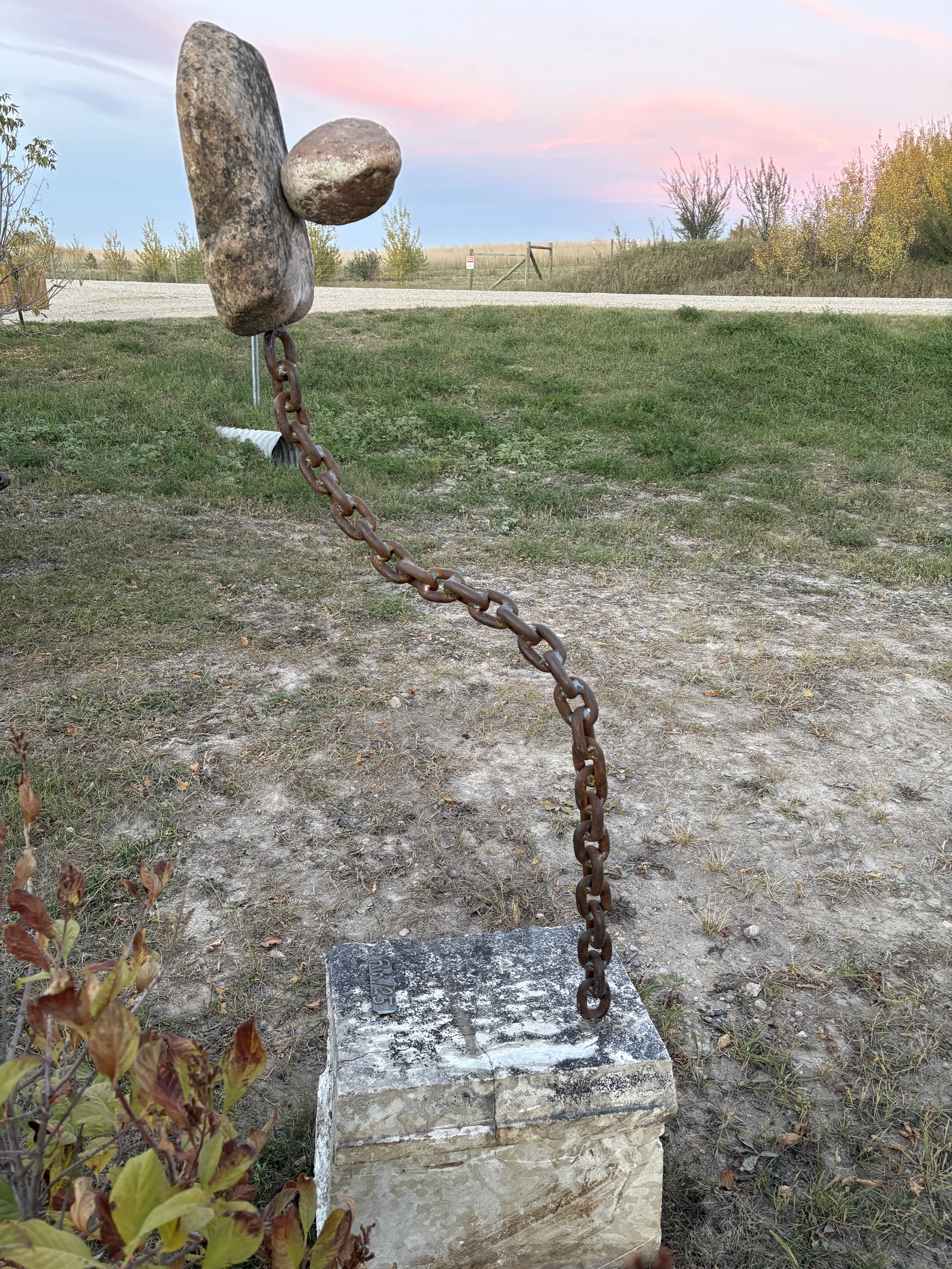 Materials: welded steel, tyndall stone, granite